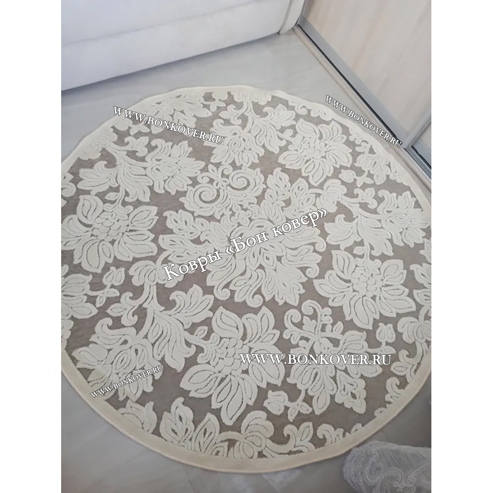 Элегантный Белый Круглый Ковер Для Гостиной Дизайн 30539 наполняет интерьер жилого пространства теплом и уютом, гармонично сочетает в себе изящество и стиль. Он создан из износостойких материалов, комфортный и долговечный.
